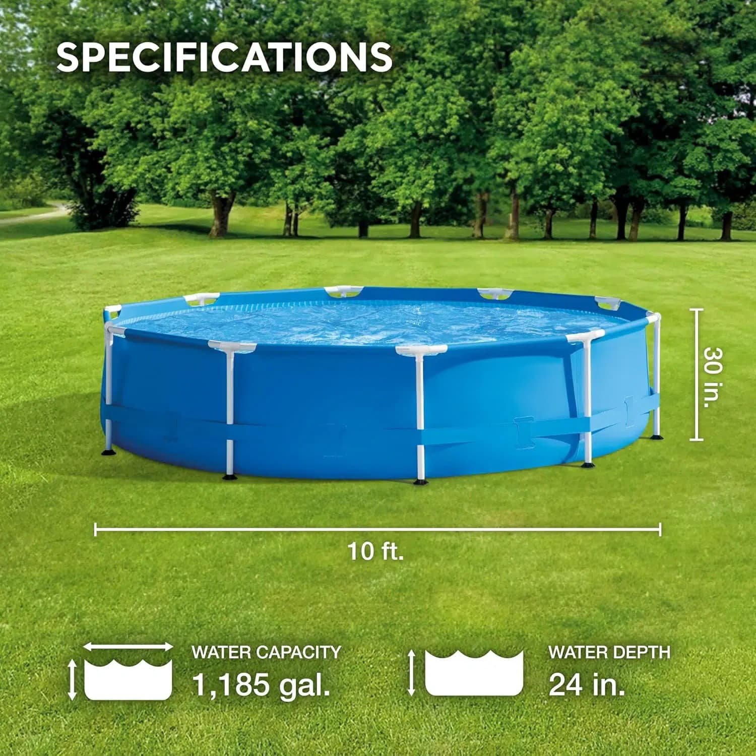 Round outdoor 10-foot by 30-inch metal frame above ground pool is engineered for strength; Ideal for children and adults ages 6 and up to relax and have a fun