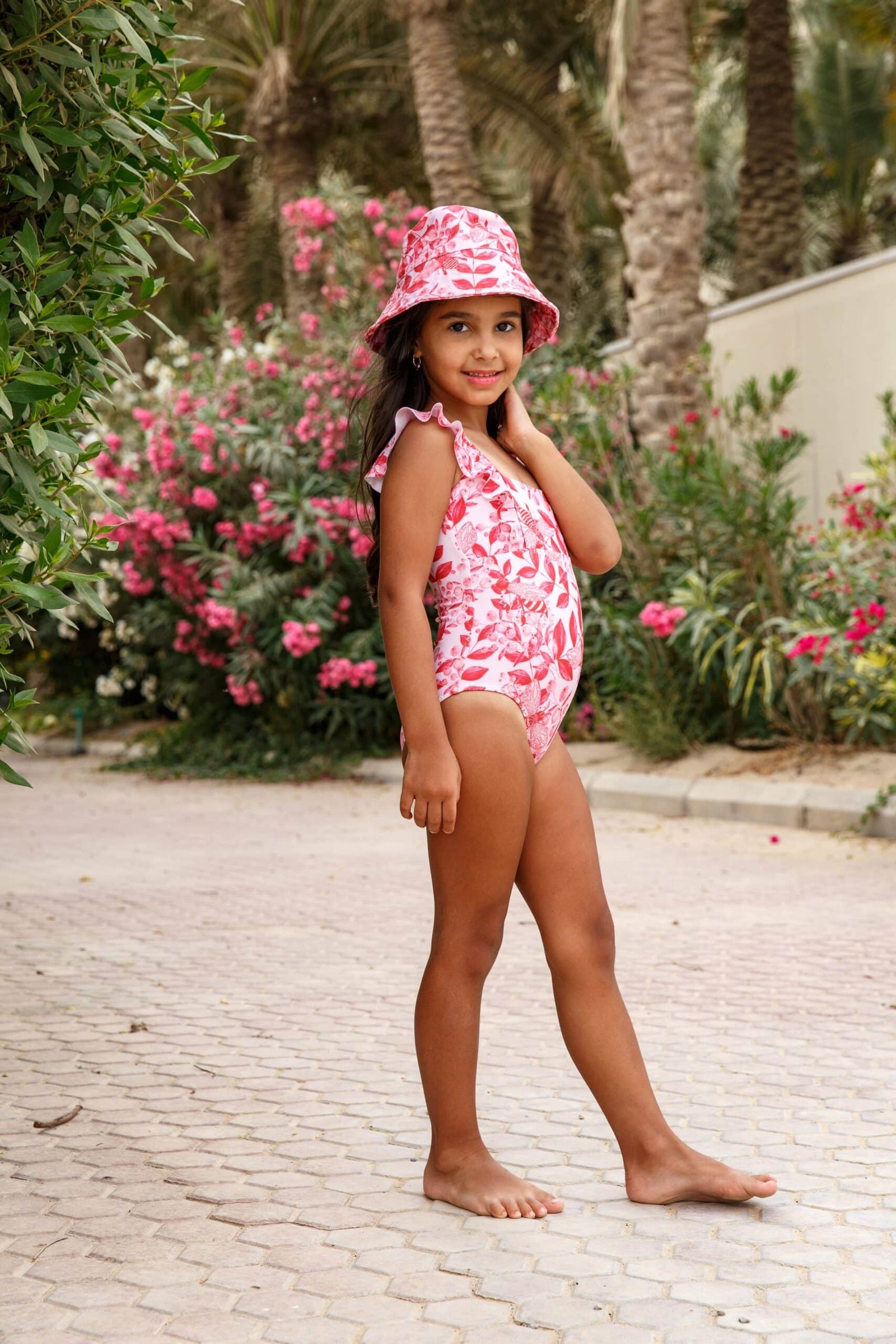 A ruffled one piece for your little girls! This piece is the perfect swimsuit for the summer, and for all the mothers that want to twin with their little girls!
