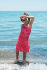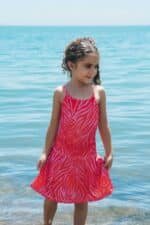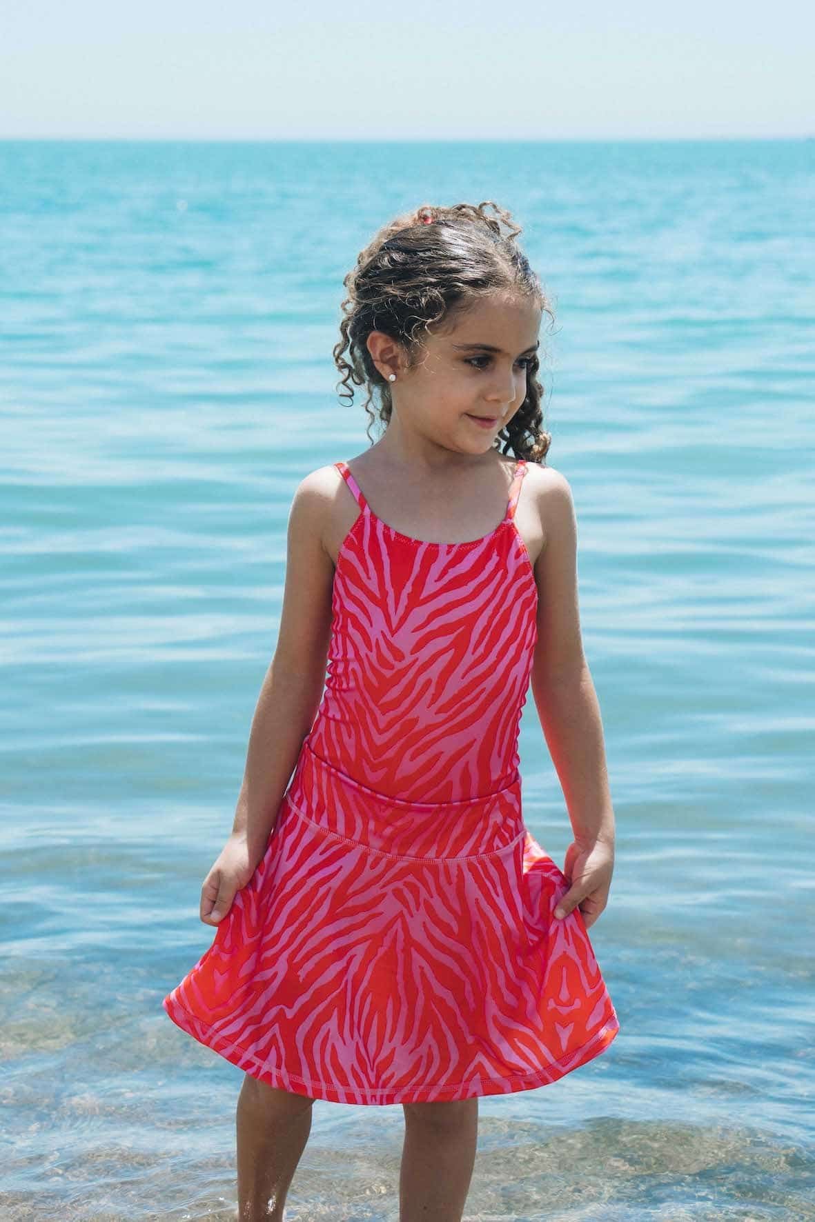A swim skort for the little girls! Our skort is a flared style with shorts underneath to give your little ones the freedom to play around without a worry!
