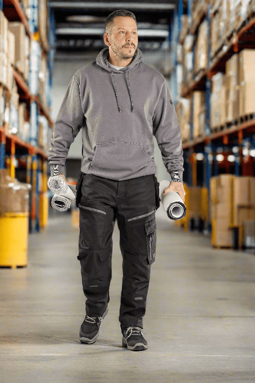 • Men’s work pants in a modern slim-fit cut. The combination of high-quality blend material with elastane and 4-way stretch construction in exposed areas allows easy and comfortable movement.