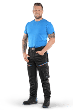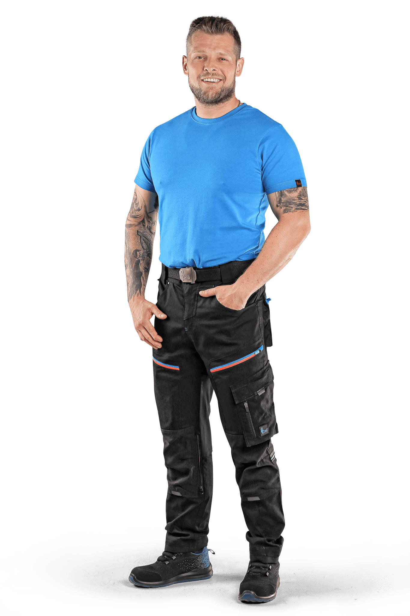 • Men’s work pants in a modern slim-fit cut. The combination of high-quality blend material with elastane and 4-way stretch construction in exposed areas allows easy and comfortable movement.