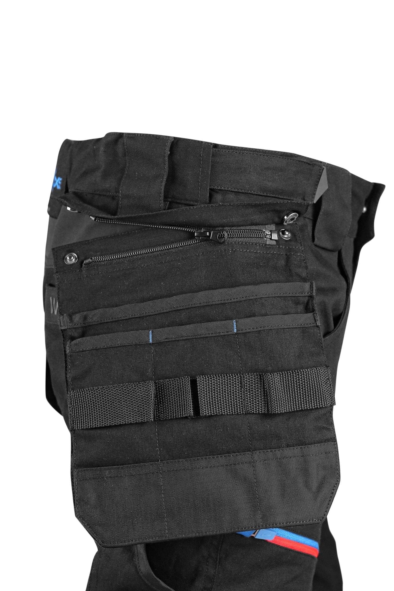 • 2 front pockets, 2 removable tool pockets reinforced with CORDURA®, thigh zipper pockets with possibility of ventilation, side pocket with zipper pocket, 2 back pockets (one with zipper) reinforced with CORDURA®, folding ruler pocket with other pockets,