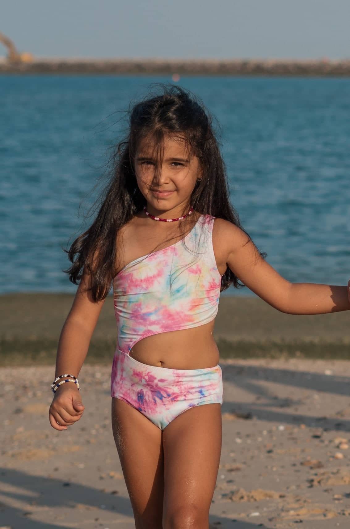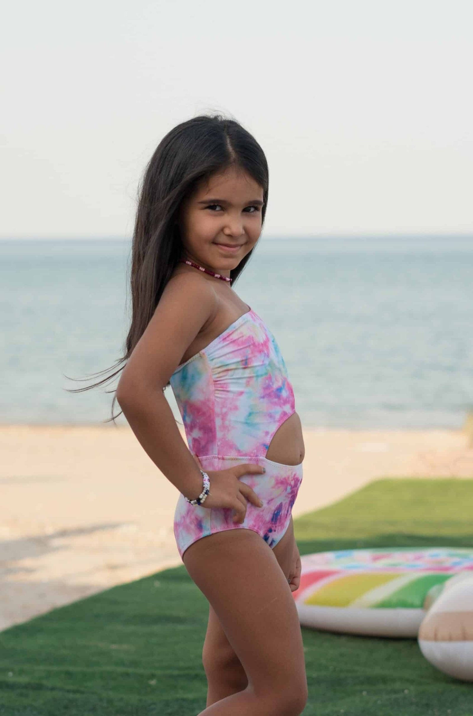 A cut-out one piece for your little girls! This piece is the perfect swimsuit for all the tie dye lovers out there, and for all the mothers that want to twin with their little girls!
