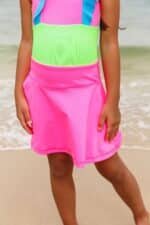 A swim skort for the little girls! Our skort is a flared style with shorts underneath to give your little ones the freedom to play around without a worry!