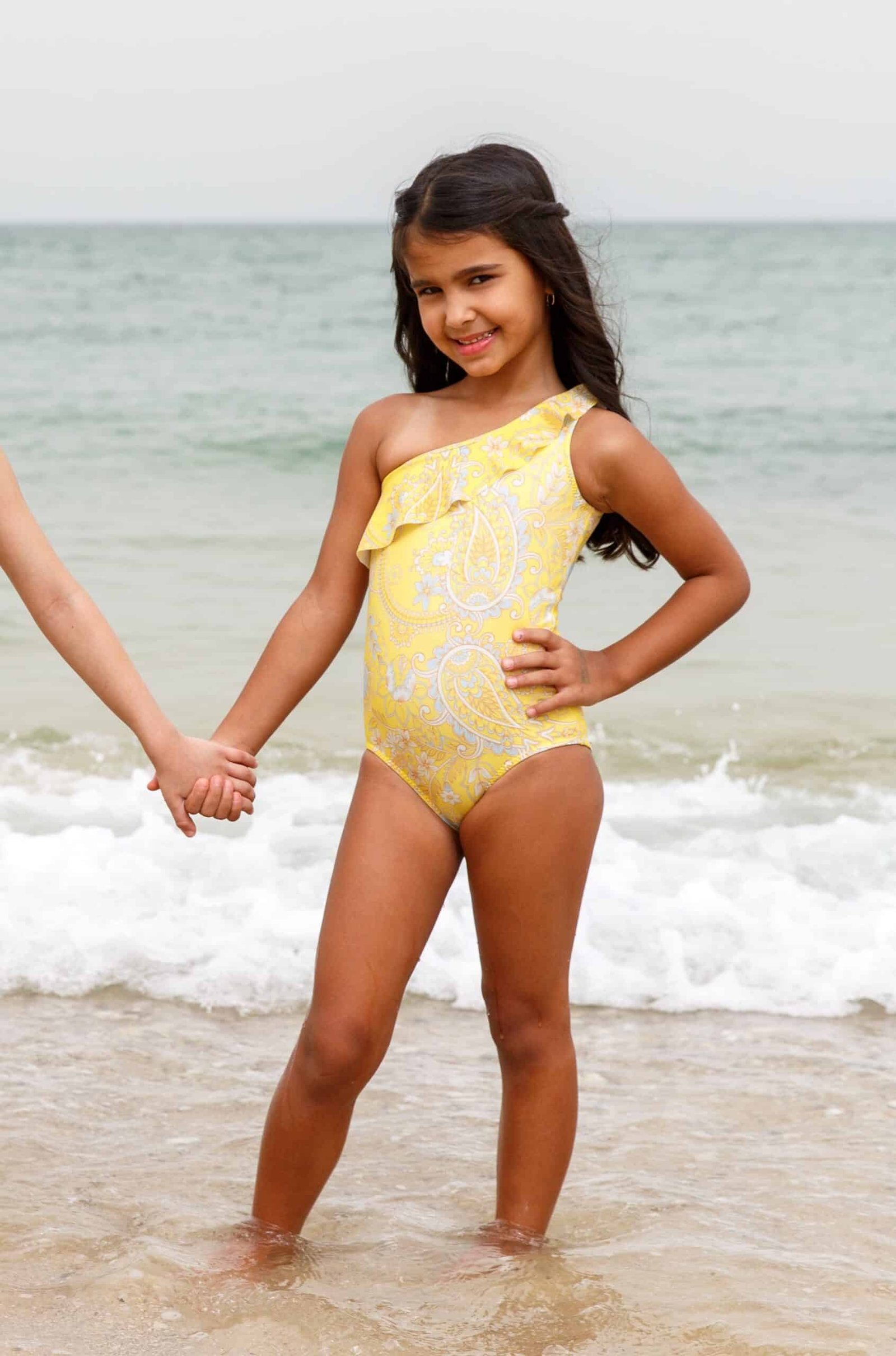 A one shoulder one piece for your little girls! This piece is the perfect swimsuit for the summer, and for all the mothers that want to twin with their little girls!
